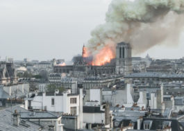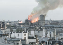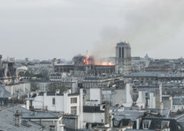 Notre Dame cathedral view from the Centre Pompidou, 15 april 2019.